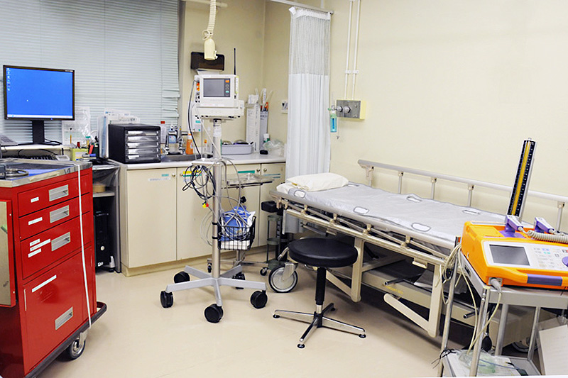 また、「東京都指定二次救急医療機関」として、年中無休、24時間オープンの救急医療体制を敷き、月間約180台の救急車を受け入れています。マルチスライスCTやオープン型MRIに人工呼吸器(4台)を備えて、迅速な診断・治療を行います。