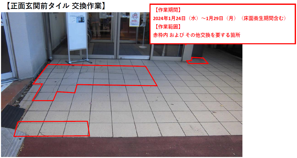 詳細は別添「正面玄関前タイル 交換作業(PDF:316KB)」を参照願います。